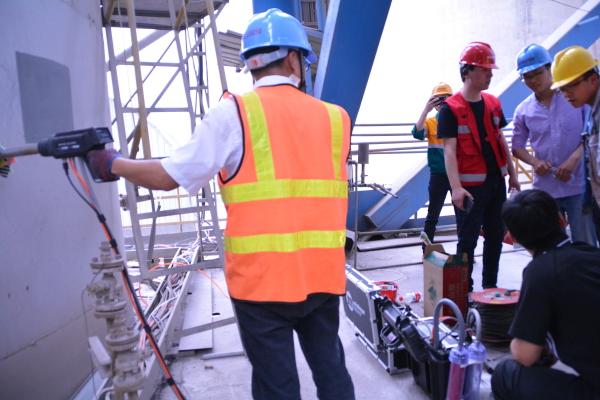 督查人員在約40米的高空進(jìn)行污染物檢測