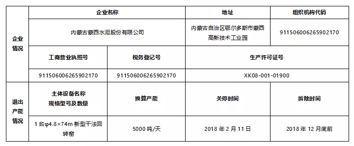 產(chǎn)能置換公示原文