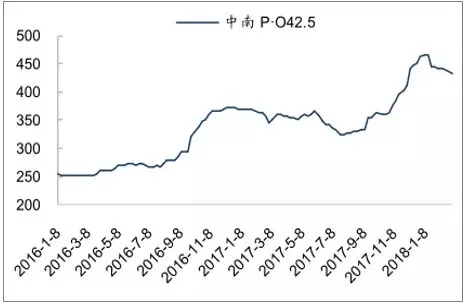 中南地區(qū)水泥價格小幅回落(單位:元/ 噸)