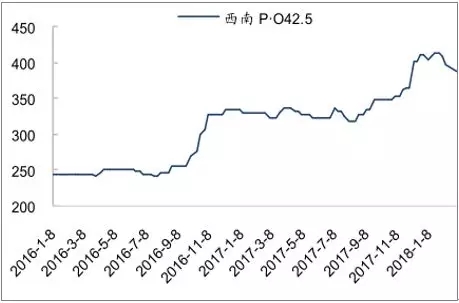 西南地區(qū)水泥價格小幅回落(單位:元/ 噸)