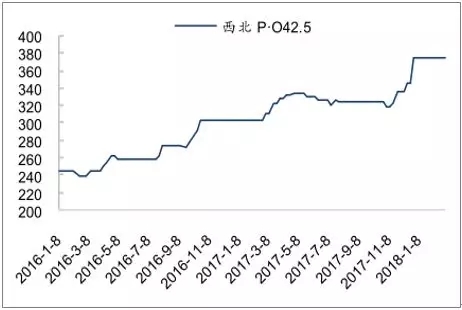 西北地區(qū)水泥價格高位穩(wěn)定(單位:元/ 噸)