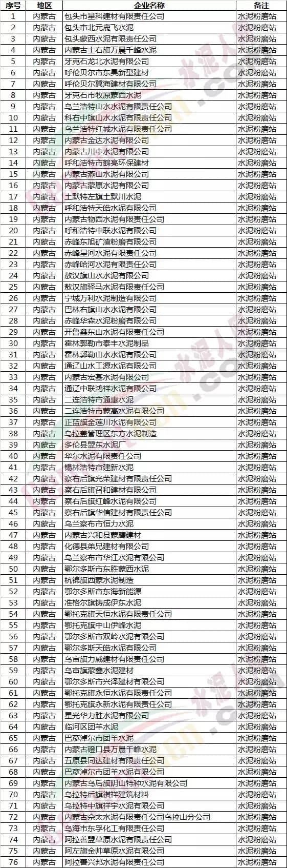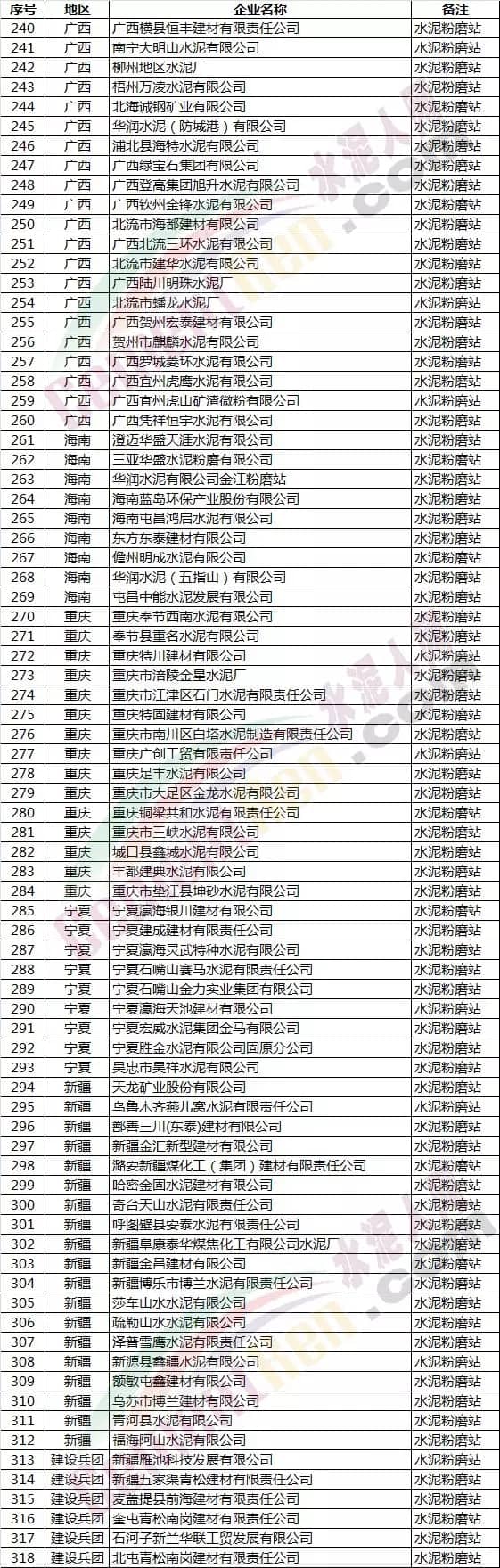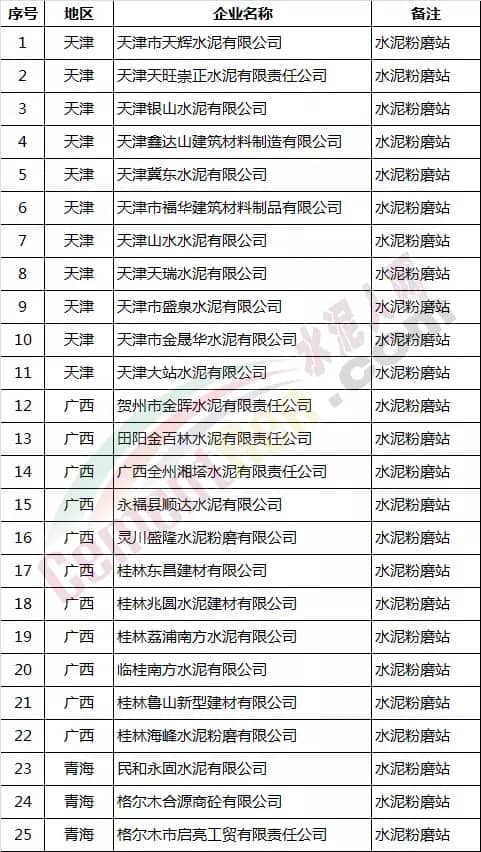 2017年超標(biāo)粉磨站企業(yè)共12家