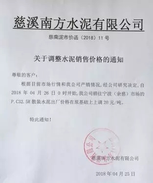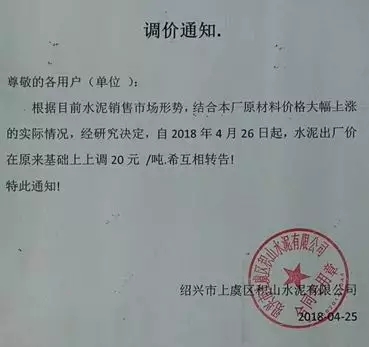 潤(rùn)心固江山、豐業(yè)酬永恒!根據(jù)當(dāng)前市場(chǎng)形勢(shì),經(jīng)公司研究決定,自2018年04月26日8:00時(shí)起,對(duì)各規(guī)格袋裝水泥、散裝水泥上調(diào)20元/噸,友情提醒:如您繼續(xù)安排車(chē)輛到我公司提貨,則視為您同意和確認(rèn)此次價(jià)格調(diào)整。