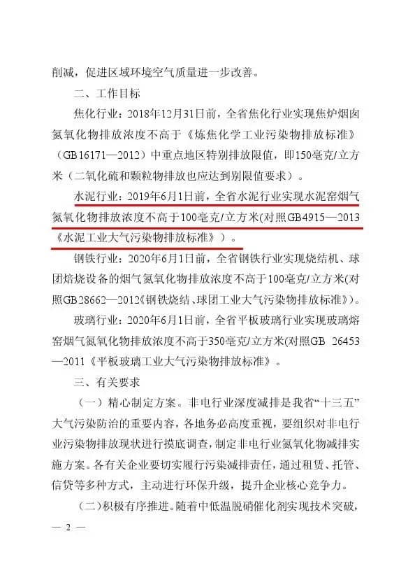2017年5月,江蘇省環(huán)保廳印發(fā)關(guān)于開展全省非電行業(yè)氮氧化物深度減排的通知。通知要求,水泥行業(yè)2019年6月1日前氮氧化物排放不高于100mg/m3。這一限值要求與國家標(biāo)準(zhǔn)《水泥工業(yè)大氣污染物排放標(biāo)準(zhǔn)》中的NOx特別排放限值320mg/m3相比,收嚴(yán)幅度達(dá)到68%。意味著同樣情況下,現(xiàn)有一條生產(chǎn)線的氮氧化物排放總量相當(dāng)于2019年6月1日后3~4條生產(chǎn)線排放總量。