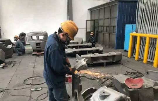采訪(fǎng)團(tuán)走進(jìn)山西華德冶鑄有限公司,這是一家生產(chǎn)、加工鑄鐵件的公司。在該公司的精整車(chē)間,工人們從事著打磨作業(yè)。記者了解到,這個(gè)車(chē)間存在的職業(yè)病危害因素主要有矽塵、噪聲、手傳振動(dòng)等。