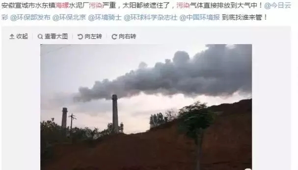 這份猜忌逐漸在當?shù)厝丝谥袀鏖_,宣城海螺也成為眾矢之的。有當?shù)鼐用駥⑵淙臻g排放粉塵的圖片視頻發(fā)布到社交媒體上,控訴其污染嚴重、無人監(jiān)管。不僅帶來社會恐慌,海螺水泥的形象也在“民怨”中受損。
