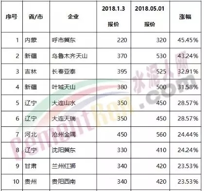 從價(jià)格方面來看,今年1-4月份廣東省、陜西省、江蘇省、云南省、河南省多區(qū)域企業(yè)連續(xù)發(fā)布漲價(jià)通知,從部分企業(yè)的漲幅來看已超過50%以上
