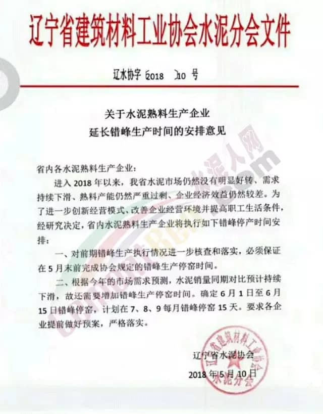 二、根據(jù)今年的市場需求預測,水泥銷量同期對比預計持續(xù)下滑,故還需要增加錯峰生產(chǎn)停窯時間。確定6月1日至6月15日錯峰停窯,計劃在7、8、9每月錯峰15天。要求各企業(yè)提前做好預案,嚴格落實。