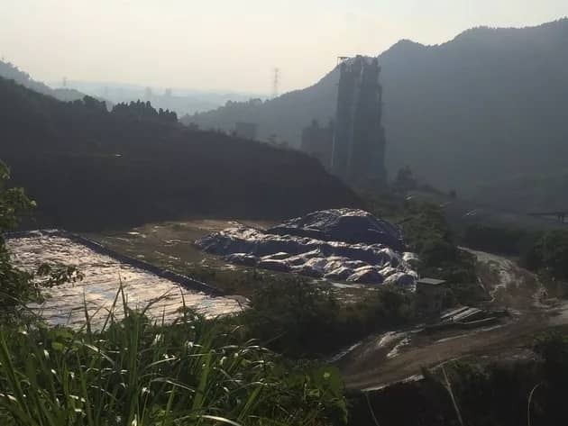 記者在野豬槽+295m平臺(tái)觀察到,剛好存在一處用藍(lán)色塑料布遮蓋的長(zhǎng)約20m、寬約2m的土堆,疑似上述報(bào)告表中提及的污染土壤儲(chǔ)存場(chǎng)所。不過,該處并未設(shè)置混泥土圍擋,土堆的部分區(qū)域也裸露在外。