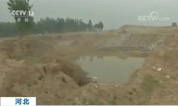 央視記者 王豐:順著村民手指的方向,我們又來到了一個這個砂石廠在附近采挖最大的一個深坑,我們到這個深坑看到的景象,基本上這個深坑的面積是相當(dāng)之大,而且正在有推土機將一些垃圾向這些深坑里面進行填埋。