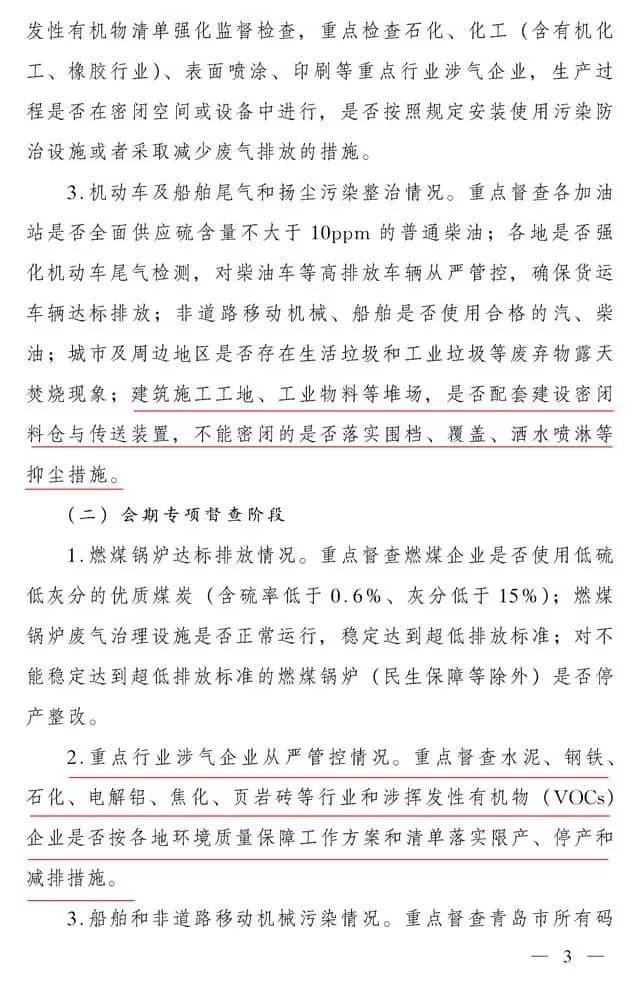 會期專項(xiàng)督查階段,重點(diǎn)行業(yè)涉氣企業(yè)從嚴(yán)管控,重點(diǎn)督查水泥等行業(yè),是否按各地環(huán)境質(zhì)量保障工作方案和清單落實(shí)限產(chǎn)、停產(chǎn)和減排措施。