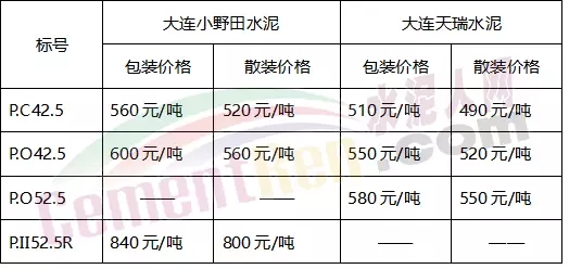 大連小野田水泥和大連天瑞水泥執(zhí)行價格來看,同標(biāo)號水泥差價在40-70元/噸。