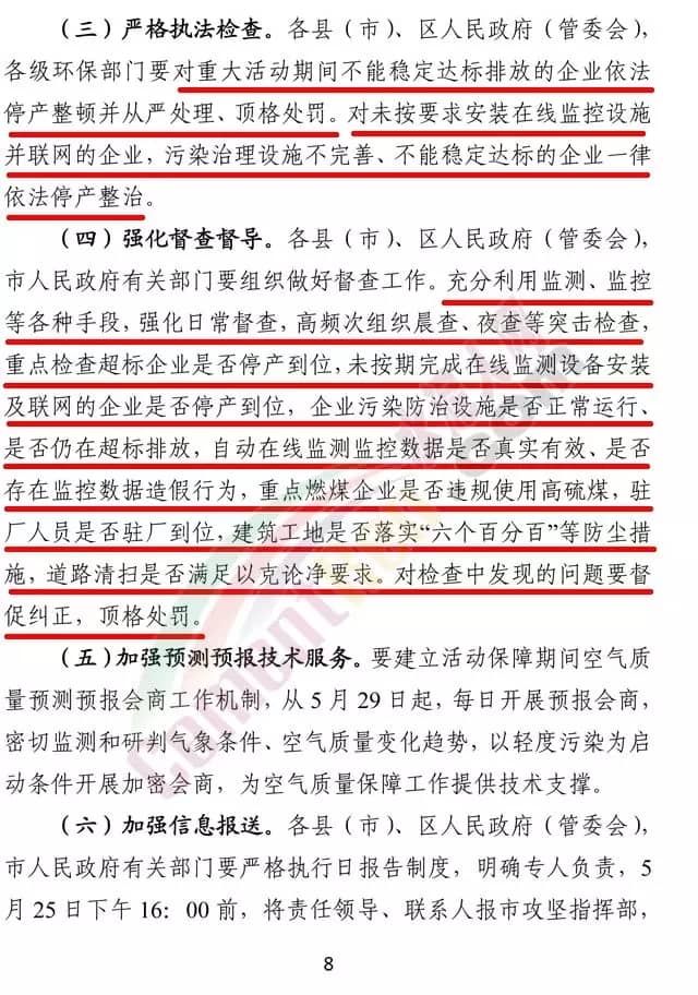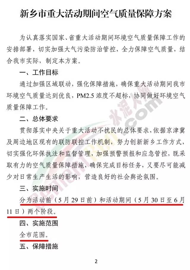 活動(dòng)期間保障措施十三條,其中針對(duì)于水泥行業(yè)提出按照管控清單要求,嚴(yán)格落實(shí)各項(xiàng)停限產(chǎn)措施,加強(qiáng)執(zhí)法檢查力度,依法依規(guī)嚴(yán)厲查處違規(guī)生產(chǎn)等行為。對(duì)5月30日前,出現(xiàn)超標(biāo)排放的企業(yè),立即依法停產(chǎn)整治,并從嚴(yán)處理、頂格處罰。同時(shí),在重大活動(dòng)期間,對(duì)于重點(diǎn)企業(yè)要派專人駐廠督查。