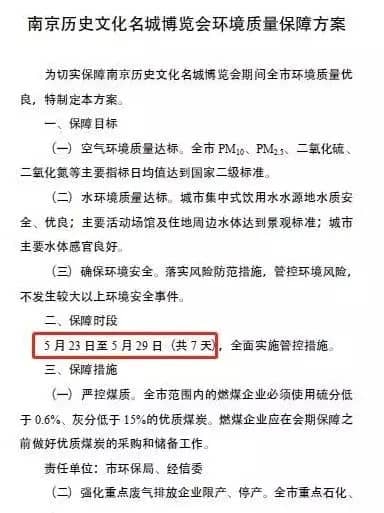 去年5月首屆江蘇發(fā)展大會(huì)在南京召開。為保障江蘇發(fā)展大會(huì)期間環(huán)境空氣質(zhì)量?jī)?yōu)良,南京市人民政府辦公廳發(fā)布通知文件要求轄區(qū)內(nèi)水泥企業(yè)錯(cuò)峰停產(chǎn)、限產(chǎn)。