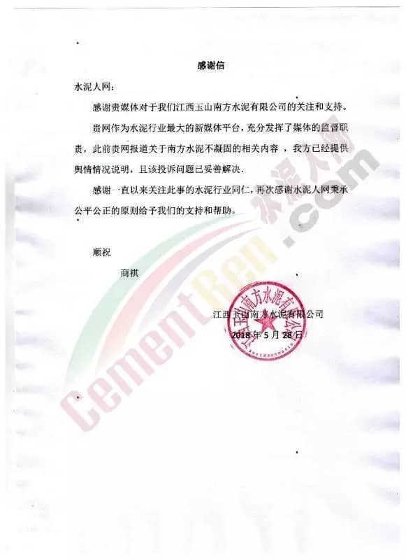 感謝貴單位編輯部對(duì)我司工作的監(jiān)督與指導(dǎo)。貴單位作為水泥行業(yè)專業(yè)的權(quán)威機(jī)構(gòu),對(duì)水泥有關(guān)各方具有不可比擬的影響力與說服力?,F(xiàn)就網(wǎng)上出現(xiàn)我司輿情的情況作如下說明,希望獲得貴單位的理解和支持。