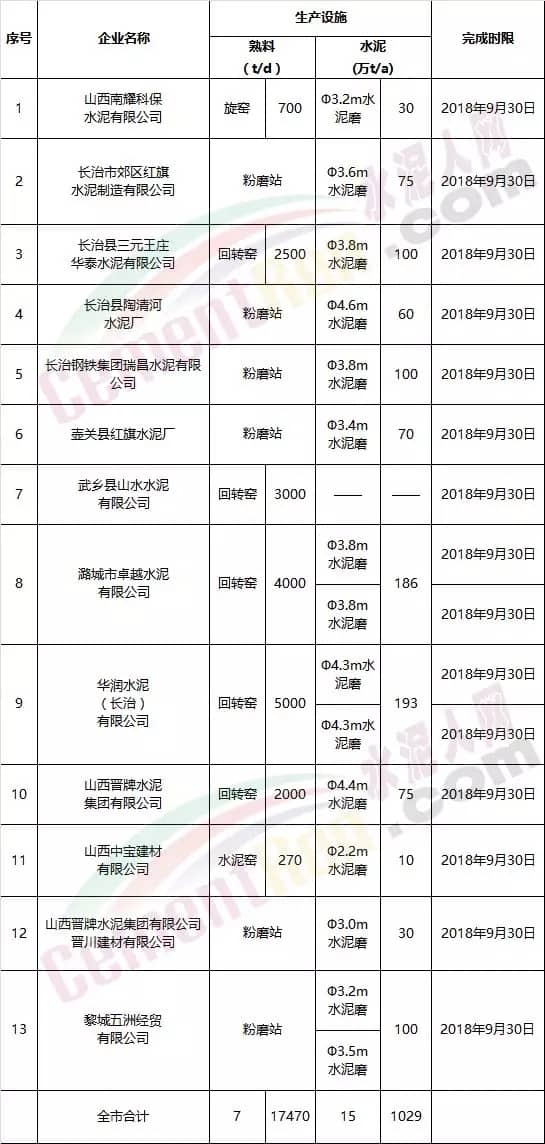水泥行業(yè)特別排放限值改造清單