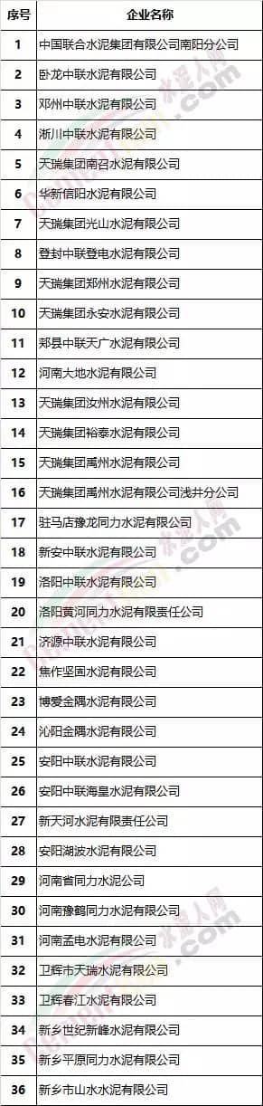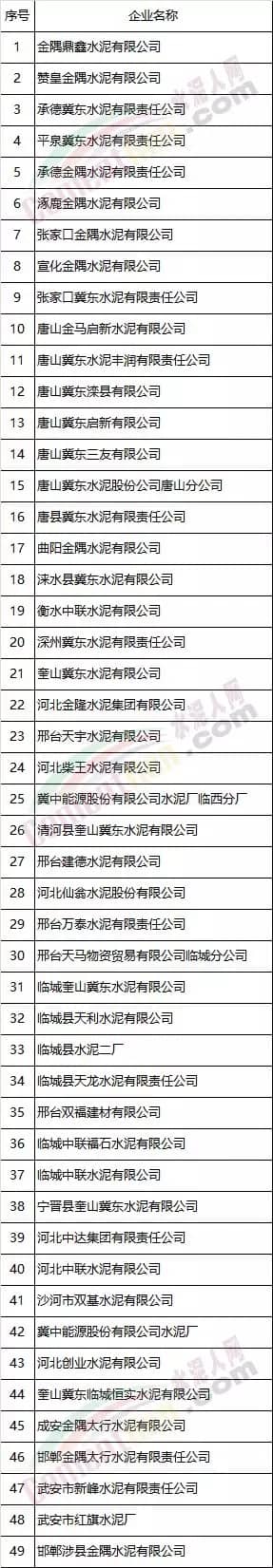 2 企業(yè)名單來(lái)源水泥人網(wǎng)信息中心,如需京津冀、汾渭平原、長(zhǎng)三角地區(qū)全部企業(yè)名單請(qǐng)聯(lián)系水泥人網(wǎng)信息中心。