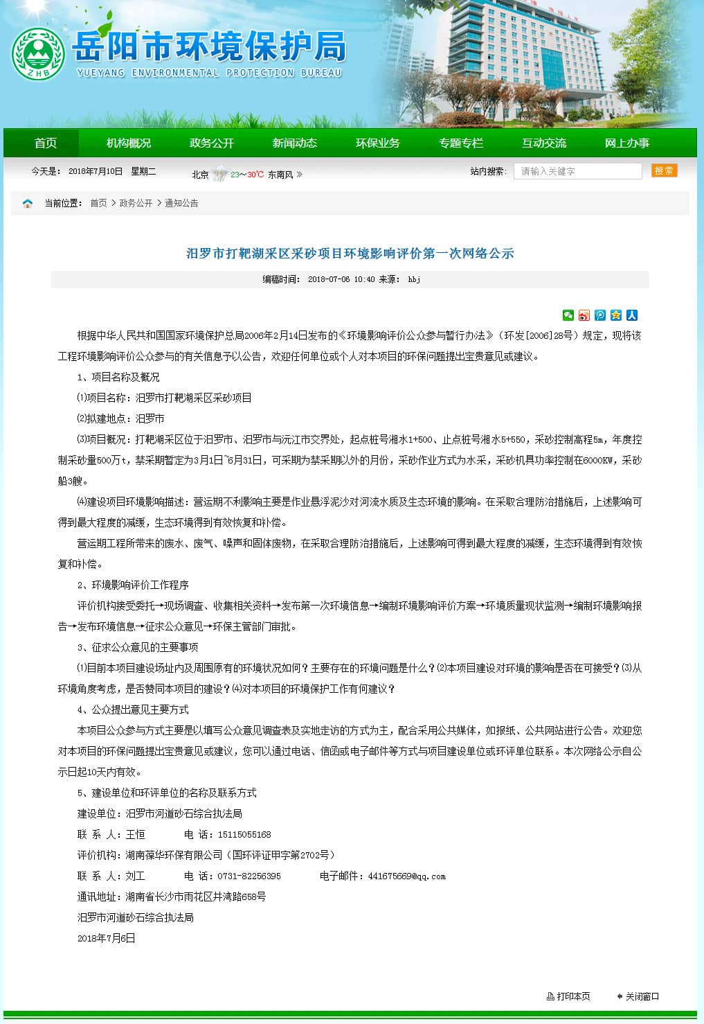 根據(jù)公示顯示,此次環(huán)評的采砂項目為:汨羅市打靶湖采區(qū)采砂項目,采區(qū)位于位于汨羅市、汨羅市與沅江市交界處,起點樁號湘水1+500、止點樁號湘水5+550,采砂控制高程5m。