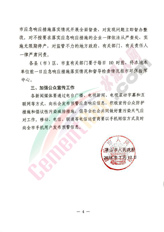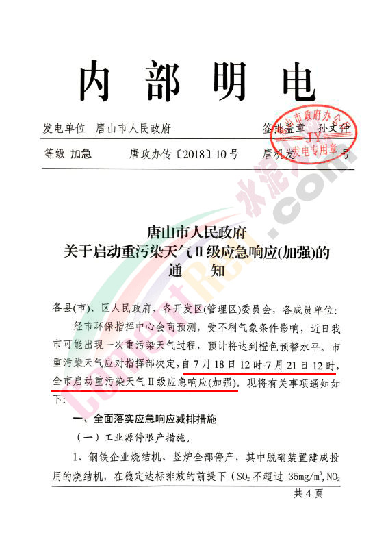 7月11日唐山市生態(tài)環(huán)境保護工作領導小組發(fā)布關于大氣污染物減排攻堅行動的通知。通知稱:為圓滿完成全年空氣質(zhì)量改善目標任務,按照2018年7月9日全市“十項重點工作”調(diào)度會議精神,河北省唐山市決定自7月20日至8月31日在全市開展SO?、NO?、CO污染減排攻堅行動,要求各縣(市)區(qū)政府、開發(fā)區(qū)管委會要抓緊啟動攻堅行動,及時通知鋼鐵、焦化、水泥、玻璃、電力等企業(yè)做好停限產(chǎn)準備,確保7月20日全面實施各項減排措施。(相關鏈接:7月20日起這個地區(qū)水泥企業(yè)或?qū)⑷嫱O蕻a(chǎn)!!)