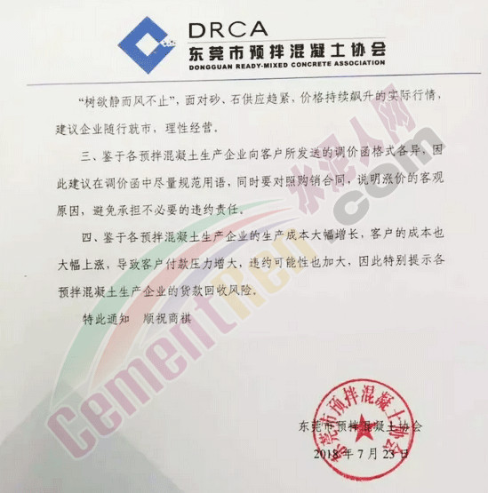 東莞市預(yù)拌混凝土協(xié)會(huì)發(fā)布關(guān)于落實(shí)防揚(yáng)塵、防斷供的緊急通知,通知稱環(huán)保高壓態(tài)勢(shì)日趨嚴(yán)格,7月23日協(xié)會(huì)接到市住建局緊急通知,東莞市攪拌站已被東莞環(huán)保組“大氣辦”、東莞市安監(jiān)站列為常態(tài)監(jiān)控對(duì)象,重點(diǎn)治理攪拌站“揚(yáng)塵”現(xiàn)象。
