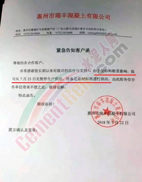 2、考慮到目前砂的供應(yīng)市場(chǎng)供不應(yīng)求的局面,從2018年7月25日0點(diǎn)開始,全市所有混凝土企業(yè)執(zhí)行“先款后貨”的供貨模式,施工單位原則上應(yīng)提前7天(具體天數(shù)由企業(yè)自定)向簽訂混凝土企業(yè)提交混凝土需求計(jì)劃,并支付預(yù)拌混凝土和濕拌砂漿預(yù)付款供混凝土企業(yè)采購原材料組織生產(chǎn);混凝土企業(yè)在收到施工方支付的預(yù)付款后,如因原材料供應(yīng)不足不能保證供應(yīng)時(shí),應(yīng)至少提前一天告知工地。