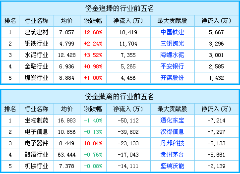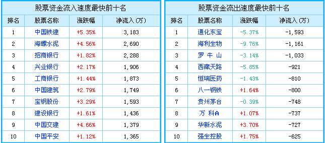 行業(yè)資金流速排名