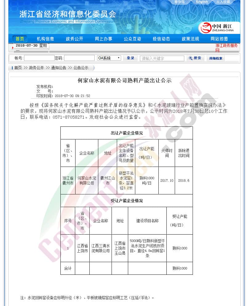 也就是說5000t/d熟料生產線至少需要退出6250t/d產能。按照上述公示文件計算,還需退出3750t/d企業(yè)能才能投入建設新項目。