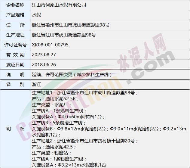 據水泥人網了解,1000t/d熟料產能出讓企業(yè)浙江衢州市何家山水泥有限公司共有兩條熟料生產線,規(guī)模分別為2500噸/日和1000噸/日。其中熟料1000t/d生產線在幾年前就已停產,今年6月份正式拆除退出。
