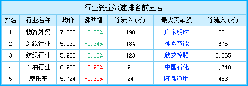 行業(yè)資金流速排名