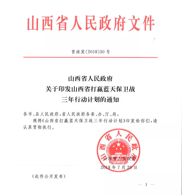 山西省打贏藍(lán)天保衛(wèi)戰(zhàn)三年行動計(jì)劃提到,為認(rèn)真貫徹落實(shí)中共中央、國務(wù)院《關(guān)于全面加強(qiáng)生態(tài)環(huán)境保護(hù)堅(jiān)決打好污染防治攻堅(jiān)戰(zhàn)的意見)(中發(fā)[2018]17號)、《國務(wù)院關(guān)于印發(fā)打贏藍(lán)天保衛(wèi)戰(zhàn)三年行動計(jì)劃的通知》(國發(fā)辦[2018]22號)精神,堅(jiān)決打贏山西省藍(lán)天保衛(wèi)戰(zhàn),制定《山西省打贏藍(lán)天保衛(wèi)戰(zhàn)三年行動計(jì)劃》(以下簡稱“行動計(jì)劃”)。