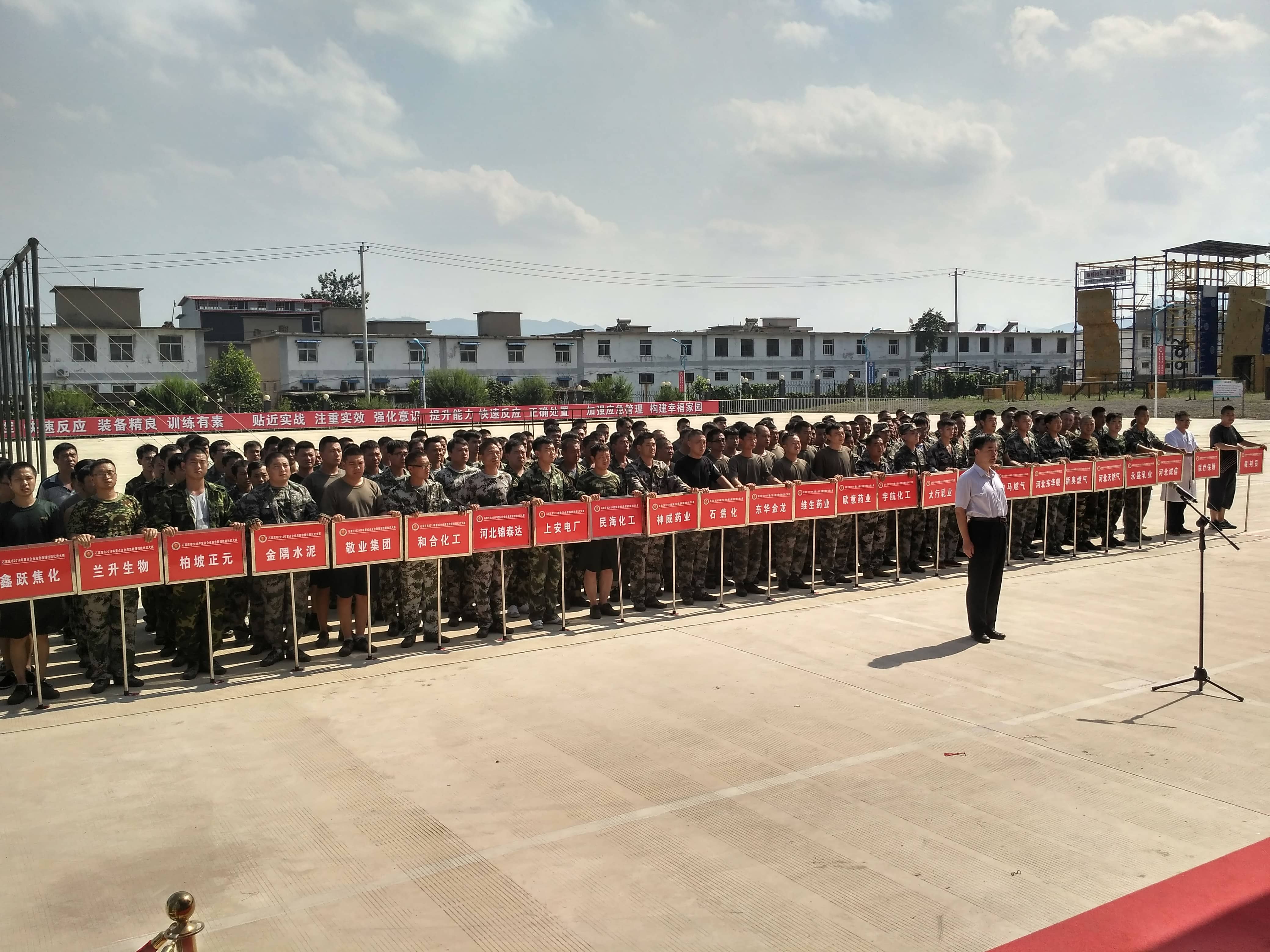 【水泥人網(wǎng)】為提升生產安全事故應急救援實戰(zhàn)能力,7月26日上午,由石家莊市政府主辦、石家莊市安監(jiān)局承辦的石家莊市2018年重點企業(yè)應急救援技能比武大賽,在河北省安全生產應急救援指揮中心舉行。石家莊市委常委、常務副市長李雪榮出席大賽活動并講話。石家莊市高危重點企業(yè)24支救援隊伍240余人參加了比武大賽。我公司共8名應急救援隊員參加了大賽,喜獲二等獎。