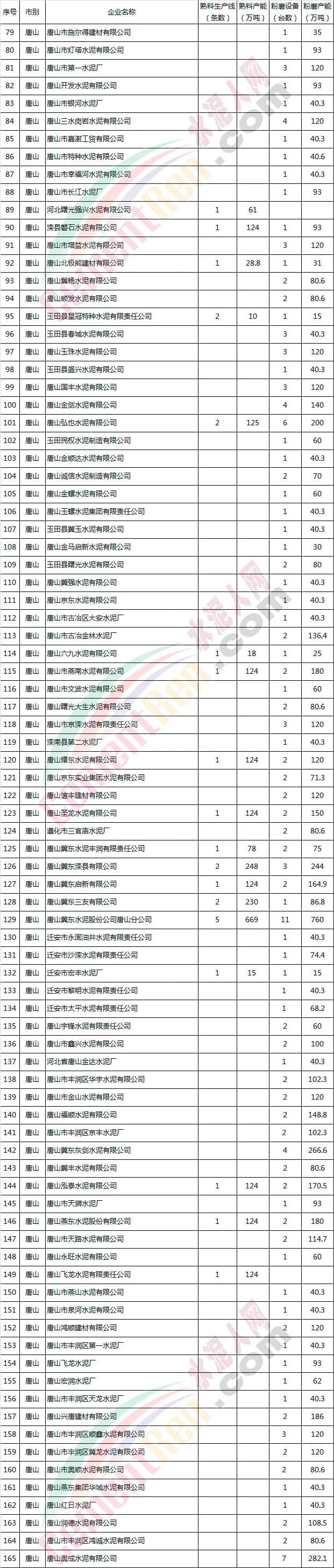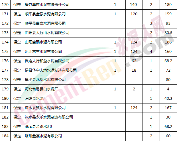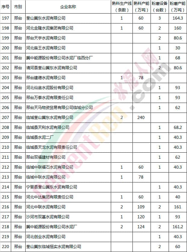 河北省水泥企業(yè)產(chǎn)能情況表