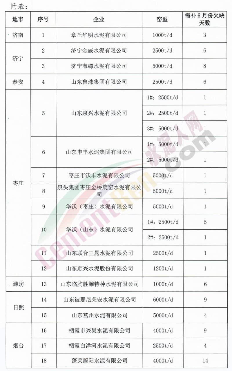 昨日(8月7日)山東省水泥行業(yè)協(xié)會發(fā)布了《關(guān)于抓好秋季停窯限產(chǎn)落實的通知》,通知稱,按照山東省環(huán)境保護(hù)廳2018年5月7日回復(fù)的《山東省環(huán)境保護(hù)廳關(guān)于水泥熟料企業(yè)實施夏季停窯限產(chǎn)的復(fù)函》(魯環(huán)函[2018]290號文)要求,自8月17日0點到9月5日24點全省所有熟料生產(chǎn)線(含特種 水沁和建通窯,包括承擔(dān)危廢和城市垃圾處理的生產(chǎn)線)將全面實施秋季停窯限產(chǎn)。結(jié)合6月份夏季停窯限產(chǎn)執(zhí)行情況,為抓好秋季停窯限產(chǎn)落實,確保限產(chǎn)效果要求: