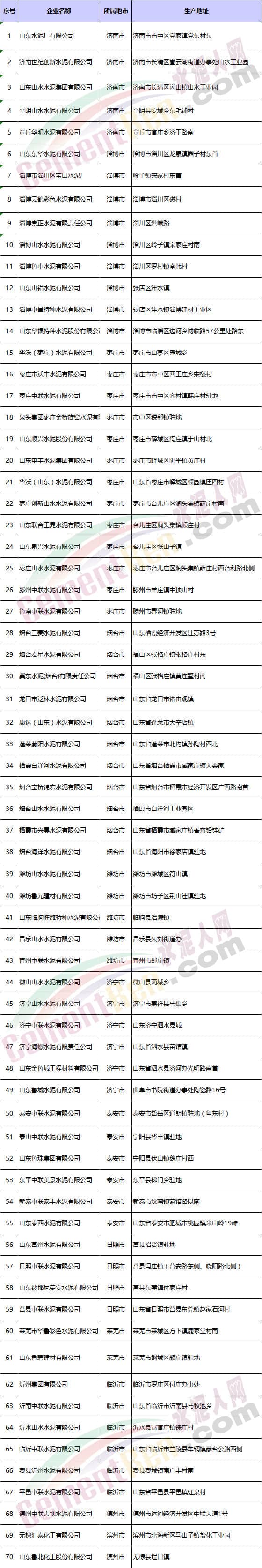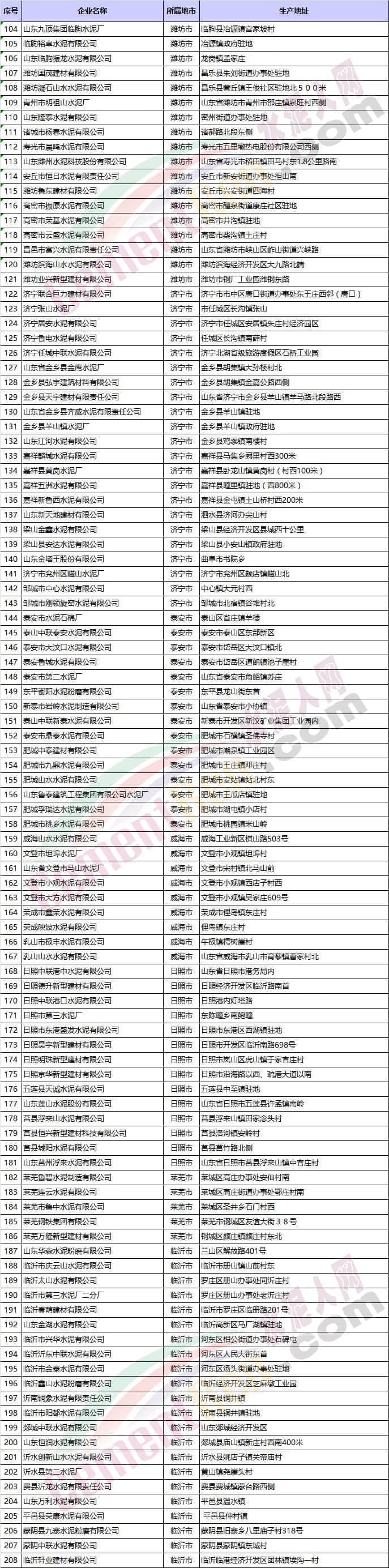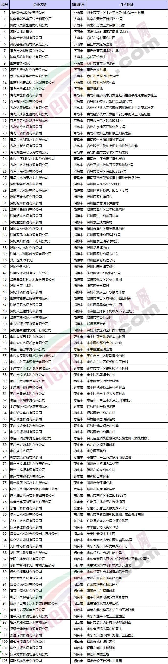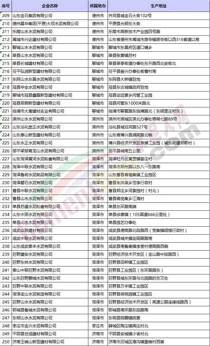山東省水泥企業(yè)名單