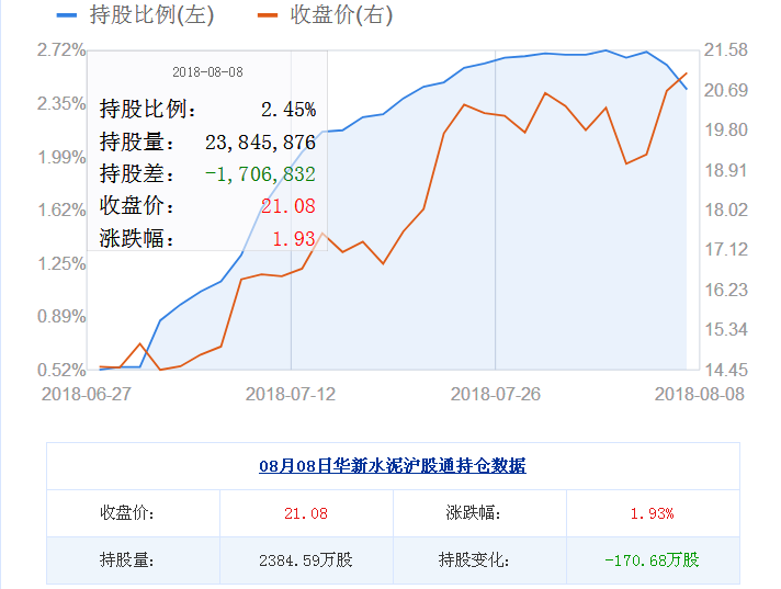 【水泥人網(wǎng)】數(shù)據(jù)顯示,截至08月08日華新水泥于滬股通持股量為2384.59萬股,占其A股股本比例為2.45%,比上一交易日減少170.68萬股。