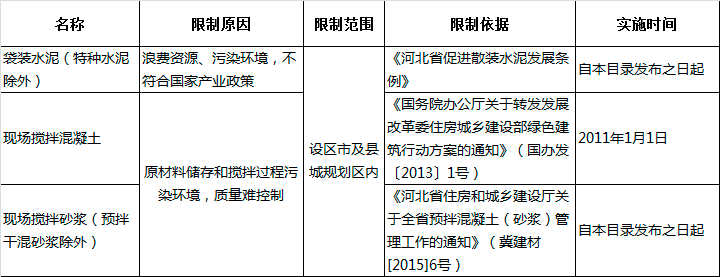 河北省推廣、限制和禁止使用