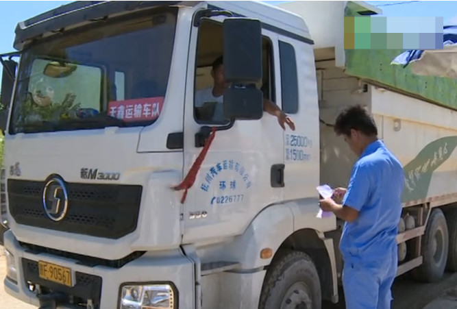 砂場(chǎng)工作人員在查看司機(jī)的采運(yùn)管理單