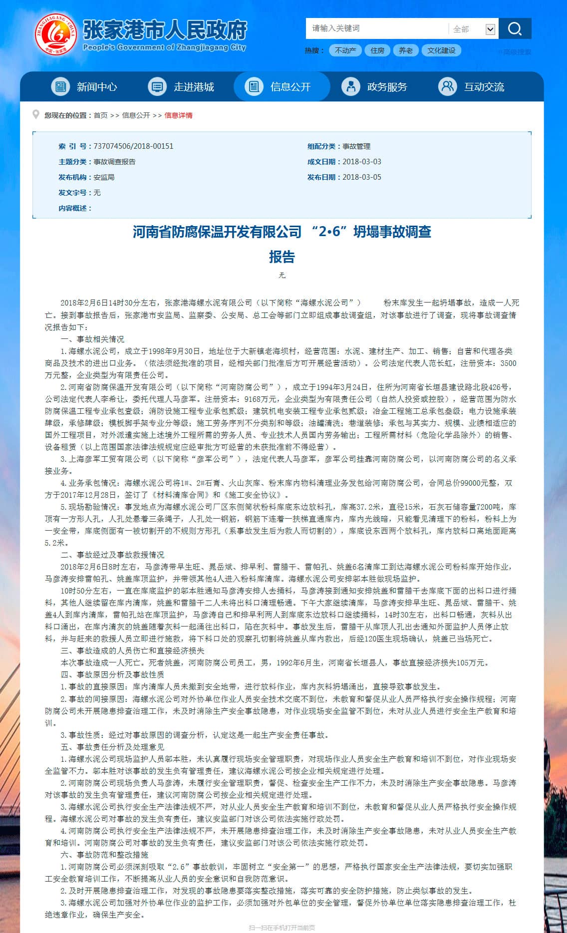 河南省防腐保溫開發(fā)有限公司 “2·6”坍塌事故調(diào)查報(bào)告
