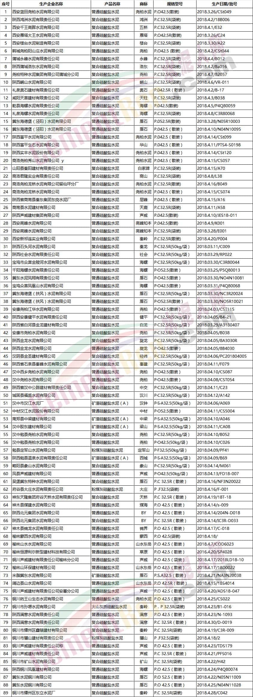 水泥合格產(chǎn)品及其企業(yè)名單
