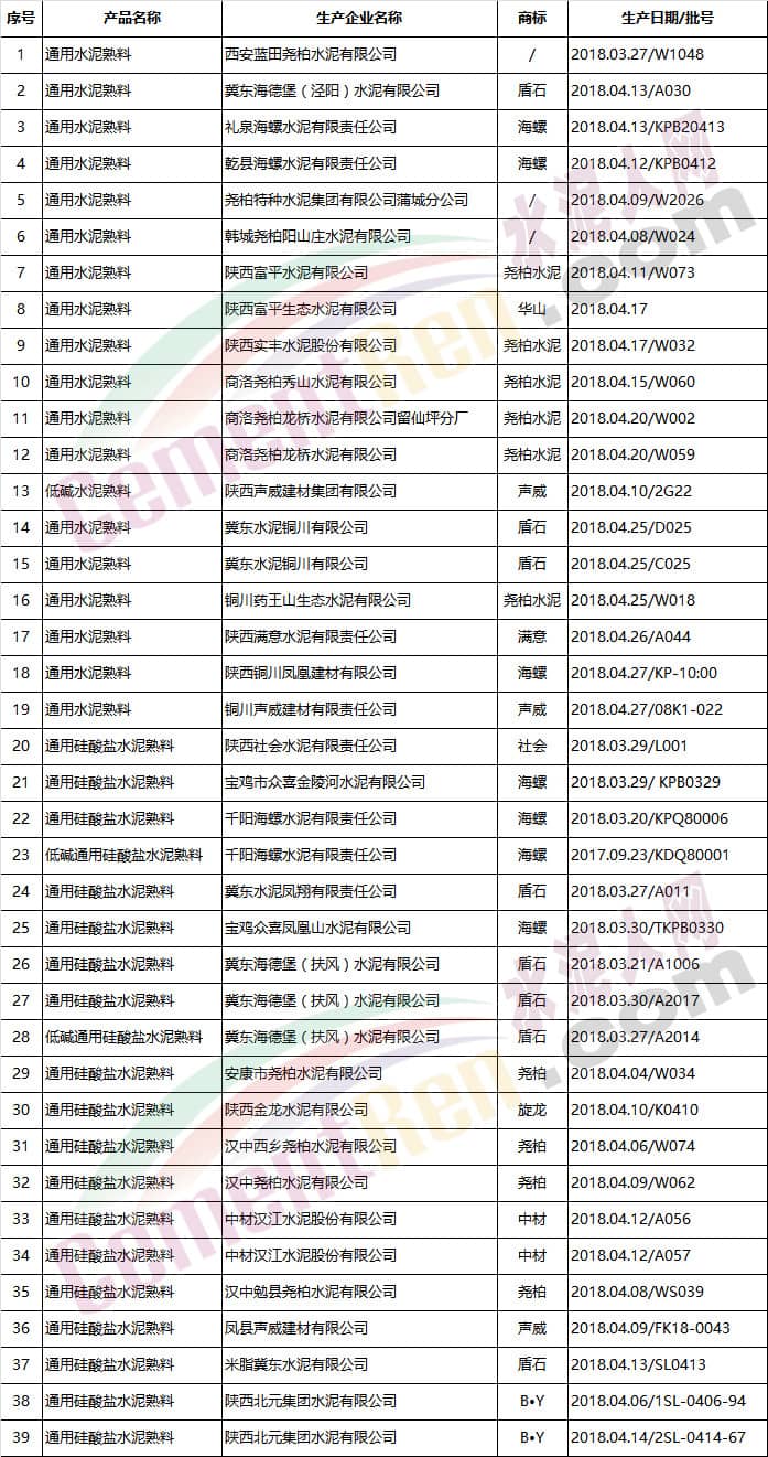 硅酸鹽水泥熟料合格產(chǎn)品及其企業(yè)名單