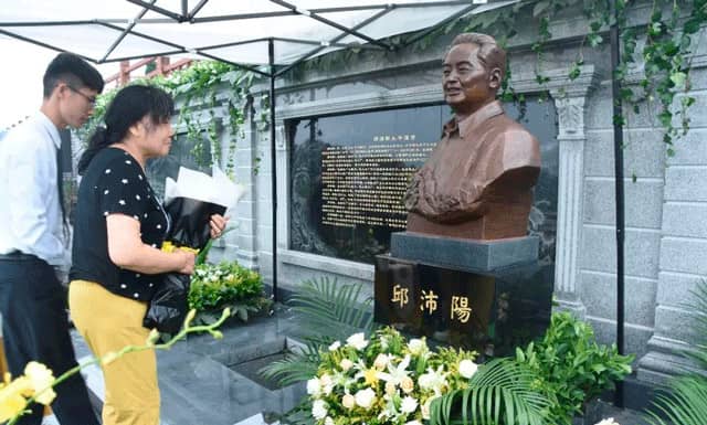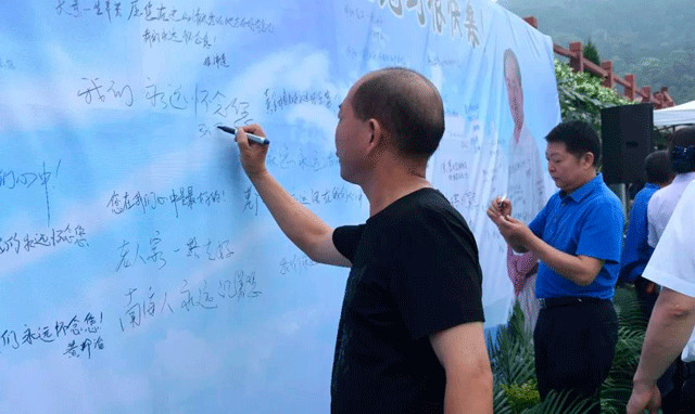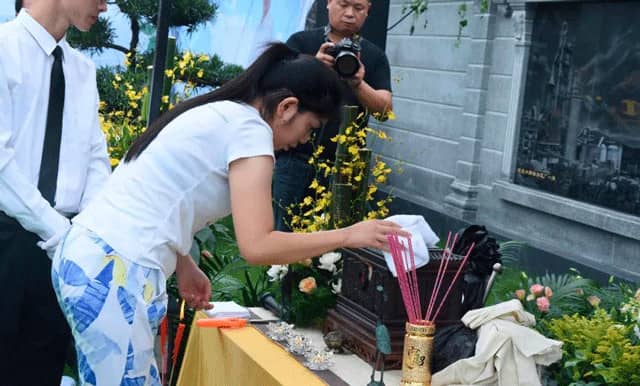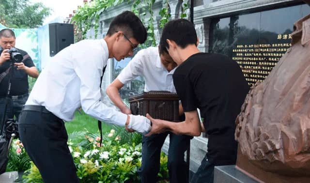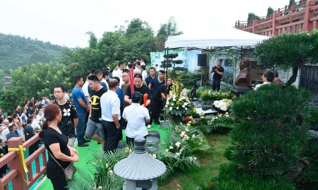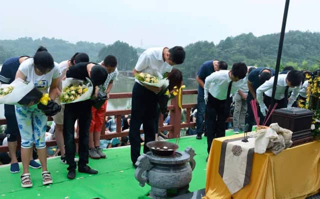上午9時18分,下葬儀式正式進行,儀式分為追思緬懷和下葬兩個環(huán)節(jié)。追思緬懷有老廠長的弟弟邱沛榮先生宣讀追思文、孝子孝女為塑像揭幕、擦凈塑像、凈靈盒、家人獻花、來賓獻花、在追思墻寫上心中思念的話語等環(huán)節(jié)。