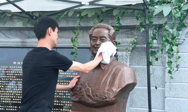 老廠長愛人為塑像獻花