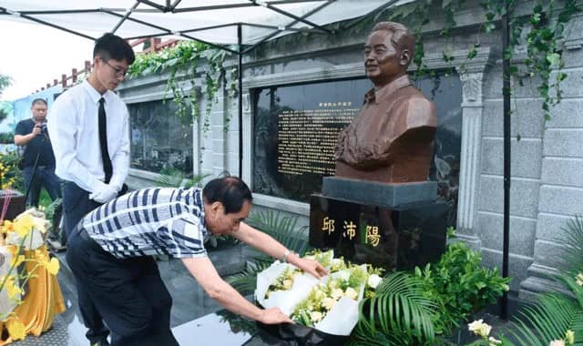 老廠長弟弟為塑像獻花