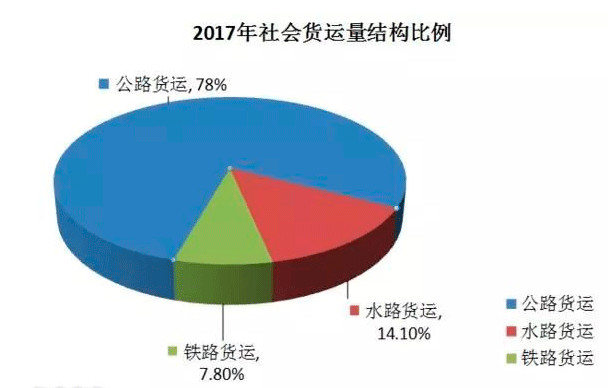 2017年我國完成社會貨運量472.4億噸,貨運周轉量19.3億噸,這份全球第一的貨運成績單里,公路運輸占78%、水路運輸占14.1%,鐵路運輸占7.8%。