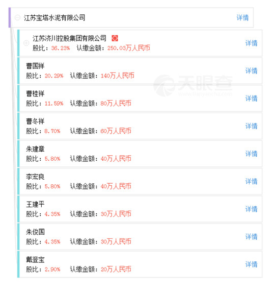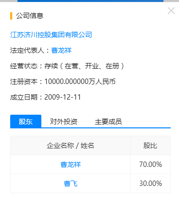天眼查數(shù)據(jù)顯示:江蘇濟川控股集團有限公司股比36.23%,曹龍祥股比70%疑似實際控股人。
