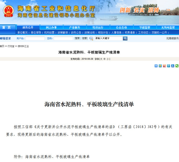 【水泥人網】日前,海南省工信廳按照工信部《關于更新并公開水泥平板玻璃生產線清單的函》(工原函〔2018〕382號)的有關要求,將更新后的海南省水泥熟料、平板玻璃生產線清單予以公開。按照清單設計產能計算,海南省水泥設計產能達1260萬噸。 原文如下: 海南省水泥熟料生產線清單 (2018年8月28日) 來源:海南省工信廳