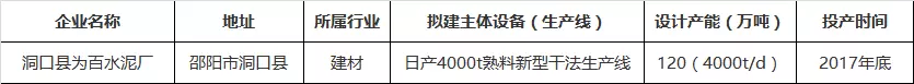 洞口縣為百水泥廠日產(chǎn)4000t熟料新型干法生產(chǎn)線項目產(chǎn)能置換方案已于2014年經(jīng)省經(jīng)信委、省發(fā)改委確認(rèn),但置換方案未予公示和公告。