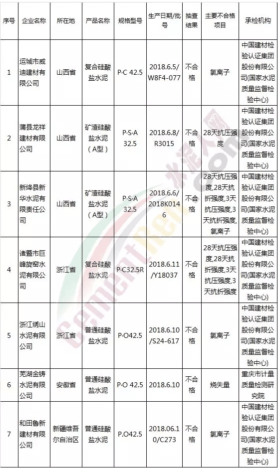 水泥產(chǎn)品質(zhì)量國家監(jiān)督抽查產(chǎn)品及其企業(yè)名單
