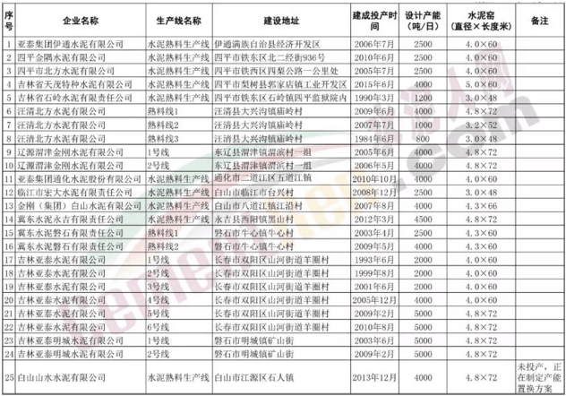 吉林省水泥熟料生產(chǎn)線清單
