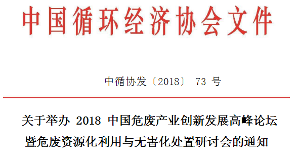 生態(tài)文明建設(shè)是中國特色社會主義事業(yè)“五位一體”總體布局的重要組成部分。在習(xí)主席新時代中國特色社會主義思想指引下,“環(huán) 境保護(hù)和綠色發(fā)展”已成為鮮明的時代主題。2018 年危廢相關(guān)政策相繼出臺,生態(tài)環(huán)境部對于固廢監(jiān)管的力度在不斷加大,社會資本規(guī)模性 進(jìn)入危廢產(chǎn)業(yè),危廢產(chǎn)業(yè)格局正逐步從粗放走向集約。然而,危廢行業(yè) 起步晚、危廢分布的復(fù)雜性和多樣性,使得危廢的管理與處理處置成為 當(dāng)前的重要挑戰(zhàn)。為規(guī)范危險廢物處置工程建設(shè)和運行,提高危廢利用 總體處置水平,控制環(huán)境風(fēng)險,改善環(huán)境質(zhì)量,建立廢物循環(huán)利用體系, 實現(xiàn)危險廢物處置減量化、資源化和無害化目標(biāo),中國循環(huán)經(jīng)濟(jì)協(xié)會聯(lián) 合中國危廢產(chǎn)業(yè)網(wǎng)、46 危廢平臺于 2018 年11 月3 至4 日舉辦第二屆“中國危廢產(chǎn)業(yè)創(chuàng)新發(fā)展高峰論壇暨危廢資源化利用與無害化處置研討會”。歡迎各單位選派或組織相關(guān)人員參加?,F(xiàn)將論 壇具體內(nèi)容通知如下:
